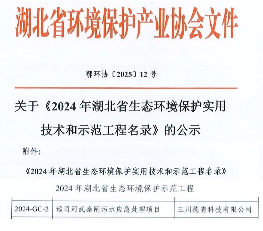 近日,湖北省环保产业协会公布了《2024年湖北省生态环境保护实用技术和示范工程名录》,三川科技公司承建的巡司河武泰闸污水应急处理工程成功入选。